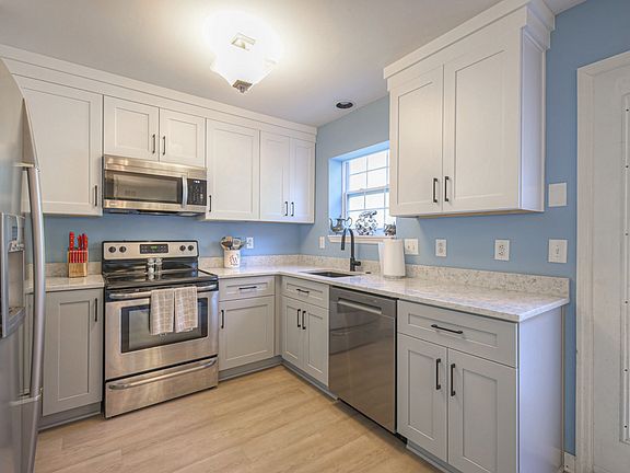 Welcome home! Your first impression may be all new floors on the main level but there's a lot more to discover - step through the living room with cozy fireplace and double high ceilings into the newly remodeled kitchen, all new cabinets, new dishwasher and microwave, which itself opens out to a spacious composite grilling deck and fenced back yard. This cul-de-sac home was upgraded with 3 sides brick offering something few others do in this section of Fieldstone Farms - the rare combination of a 2 car garage AND 2 additional driveway parking spaces. ** NEW ROOF 2025 ** Semi finished/insulated storage room above garage was pressed into service as bedroom 4 temporarily, however this 316 sq ft approx area in NOT included in the 1,329 sq ft measurement presented.