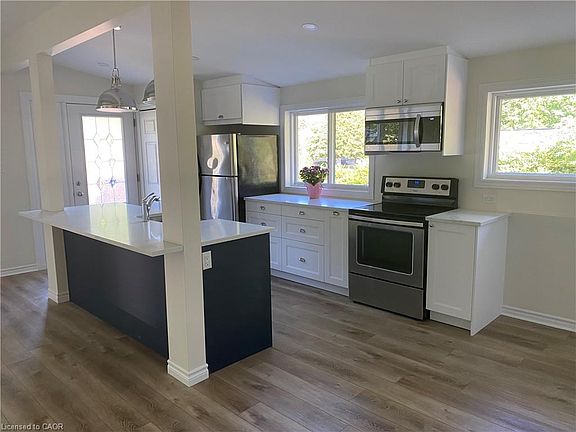 This beautifully updated bungalow in sought-after Elizabeth Gardens delivers outstanding flexibility for today’s lifestyle. With a separate entrance to the fully finished lower level and a dedicated laundry room on each level, it stands out as one of the best in-law arrangements available — ideal for multigenerational living, a private home office setup, or a shared investment property. Extensive renovations, totaling over $170,000 in the past four years, make this home truly move-in ready. Major upgrades completed in 2021 include a high-efficiency furnace, central air conditioning, hot water heater (all owned), a 200-amp electrical panel, two show-stopping new kitchens with quartz countertops and modern cabinetry, and fully renovated bathrooms on both levels. Luxury vinyl plank flooring flows seamlessly throughout, and select windows have also been replaced. In 2022, both the roof plywood and shingles were replaced, adding to long-term peace of mind. The main level offers a bright, open-concept design with cathedral ceilings, three spacious bedrooms, a modern kitchen, a large dinette, and a comfortable living room. The lower level provides two additional bedrooms, a second full kitchen, a renovated bathroom, its own laundry facilities, and a generous recreation room — the perfect setup for extended family, teenagers, or a separate workspace. Outdoors, the large rear yard is a blank canvas to make your own, while the oversized driveway easily accommodates up to six vehicles. Set on a quiet crescent, this home is just minutes to parks, schools, shopping, transit, and the Lake Ontario — offering an unbeatable blend of location, convenience, and lifestyle. Expect to be impressed. Great in-law suites are hard to find, but this one checks every box!