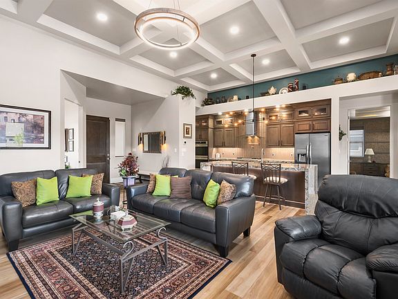 'The Escape" 2020 Parade of Homes 4 award winning custom home will impress from the moment you walk in. Welcome to 12" coffered ceilings in the great room with custom lighting and tiling around the gas fireplace, granite waterfall island in the chef's kitchen, coffered ceilings in the dedicated office space with stunning views of the Monument, and custom fixture in the dining area round out this open space concept. Multi-room speakers throughout the home and back patio are a nice touch for this 3 bed, 3 bath, 2238 SF home with accent lighting throughout. The attached 3 bay garage features a 14' door and 39' for inside RV storage, epoxy flooring and if you need more space, there is outside RV parking behind the fence. The professionally zeri-scaped yard, custom Telluride stonework and beautiful concrete driveway will welcome you as you come into this stunning home. There are so many more unique features to this home, you will want to get your buyers in to experience the best of Granite Falls living.