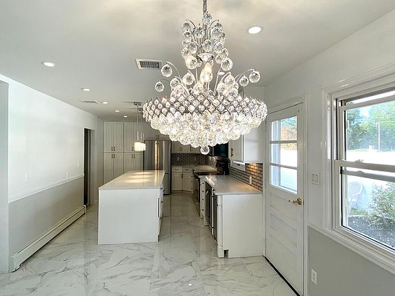 BACK on the market an extraordinary luxurious home, located in the sought-after Jericho West Birchwood area. Bright sunny ranch-style home boasts 5 bedrooms and 5 bathrooms, with an attached 2 car garage and personal TESLA electric car charging station. Varnished hardwood oak floors and plenty of natural sunlight. Heart of this home is the exceptional eat-in chef's kitchen, featuring a granite central island, stainless steel appliances such dual wine refrigerator, ice maker, new GAS oven, new dishwasher. The home showcases 5 bedrooms and 5 bathrooms adorned with elegant dazzling chandeliers, high hats, white moulding, and white marble finishes. Formal entry foyer welcomes you with a chandelier, leading to a spacious living room and fireplace. Convenient washer dryer on the floor and new HVAC central AC add to the modern comforts of the home. Basement offers even more versatility with a bathroom, wet-bar room, and two spacious rooms. Elegant wet bar room features a new refrigerator, sink, wine rack and plenty of cabinet space. Marble bathroom and extra spacious rooms on this level are well-suited for a home gym, a home theater, or other creative uses. Chandelier and high hats in garage to provide plenty of light. Charming exterior is complemented by new sprinkler system, well-manicured lawn, expansive deck, bbq grill, and granite stone table ideal for relaxation and entertainment. Backyard also features an updated enormous shed which has electricity, outlets and lights providing invaluable opportunity will allow you to store, organize and maintain a tidy home/garage. Recent install of white privacy fences. Carrier HVAC Units. Home has Gas heating.
