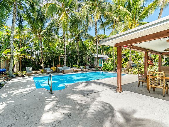 Located in the heart of downtown Stuart, this beautifully updated mid-century home offers 3 bed, 2 bath, and sits on over 1/3 of an acre. Warm wood details, including a unique curved slatted wall, add character throughout. The air-conditioned garage doubles as a versatile flex space, while the upgraded bathrooms feature high ceilings, skylights, and elegant finishes.The double lot is the true standout, offering a spacious yard, heated saltwater pool, summer kitchen, RV hookup, and two finished bungalows -- perfect for guests, home offices, or creative studios (w/income producing potential). Also, an outdoor shower, room for boats and outdoor toys, & space for a garden.Just steps from downtown restaurants, shops, cafes, and scenic waterways - Live like your always on vacation