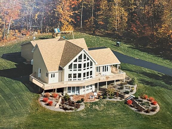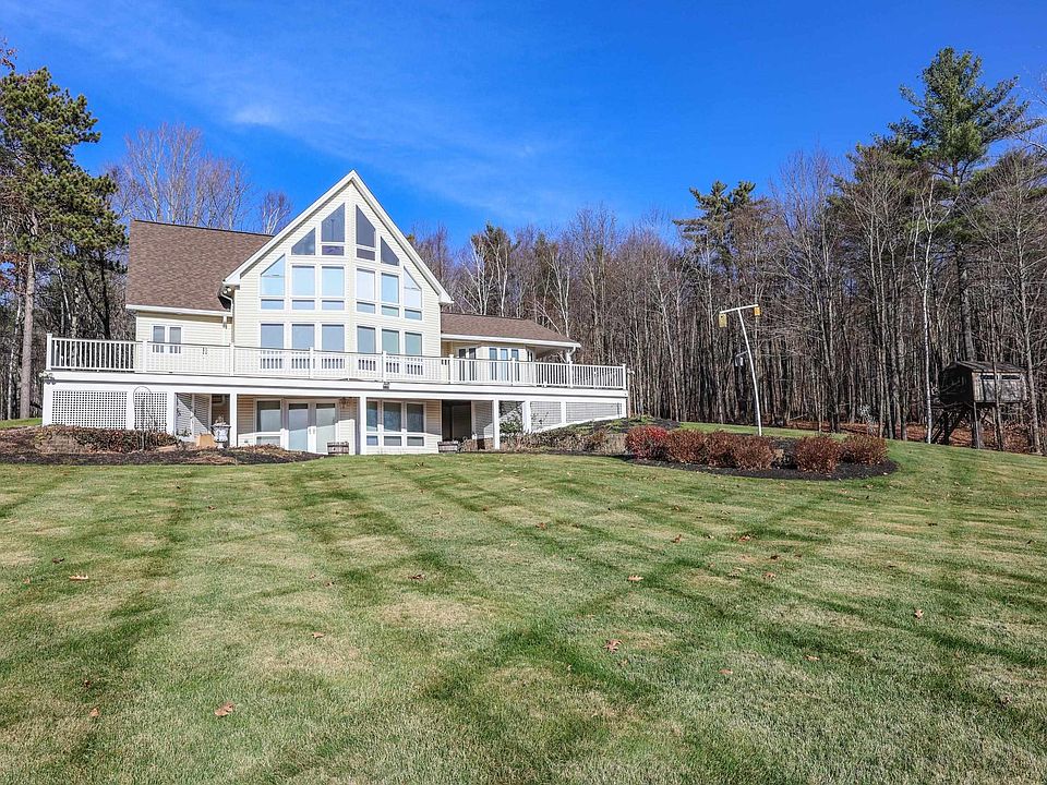 Spectacular mountain-view retreat on 22+ acres, featuring a distinctive contemporary home. The bright and spacious kitchen flows into the dining area, perfect for entertaining. A dramatic cathedral-ceiling living room and a first-floor primary suite showcase gleaming hardwood floors. The inviting family room offers stunning views of rolling fields and majestic mountains. Enjoy breathtaking vistas of Mount Monadnock from the expansive wraparound porch. 2 additional bedrooms and full bathroom on the second floor. And the recreational room/versatile space in the lower level with walk out offers additional room for whatever you might need. A 2+ car garage provides ample storage. A true New England retreat!