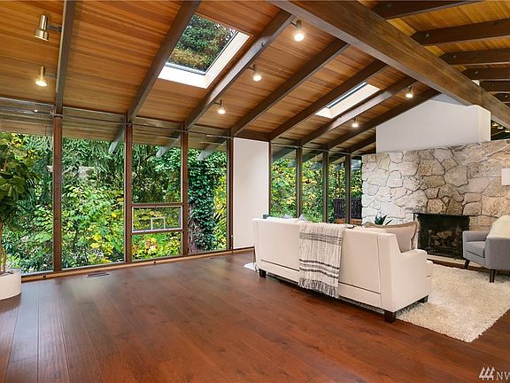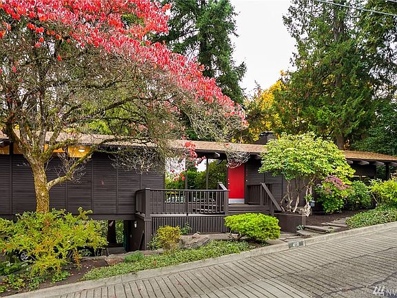 Here's a stunning mid-century modern designed by Paul Hayden Kirk. Built in 1959 by Calhoun it boasts many original details - walls of windows, vaulted wood-clad ceilings, exposed beams, terrazzo floors, cabinets and more. In pristine condition it has been painted inside and out, has new hardwood floors, new furnace, new gas cooktop, new deck and more. On a quiet street, it feels like you're living in private treehouse. Just a few blocks to Kent Station and the Sounder for easy commuting.