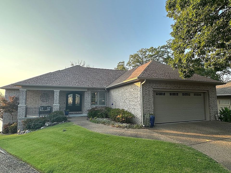 Beautiful spot on a quiet point w/ fantastic open water views for this 3/3 lake home. 3/2 + great ofc space on the upstairs walk in level. Lower walkout level to lake is home to a bright & spacious eat in kitchen, formal DR, den w/ FP & a more formal living room. 3/4 bath down as well. All of this looking out over a manicured lawn gently sloping to a swim dock & a 2 slip covered boat dock. Spacious open patio perfect for taking the party outside. Laundry room, basement storage & covered 2 car carport.