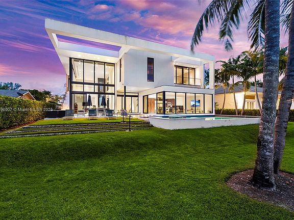 Welcome to Sunset Mansion, a breathtaking 2-story ultra-modern marvel nestled in the prestigious guard-gated Golden Isles community. This secure sanctuary boasts 6 bedrooms and 6 bathrooms, adorned with soaring 24-foot ceilings throughout the living areas, offering an unparalleled sense of space and grandeur. Elevate your lifestyle with the convenience of an elevator and indulge in culinary delights with a state-of-the-art summer kitchen. With 85 feet of yacht-friendly water-frontage, effortlessly access the bay and ocean, making every sunset an unforgettable experience. Embrace luxury living at its finest in this waterfront masterpiece. Call listing agent for exclusive showings.
