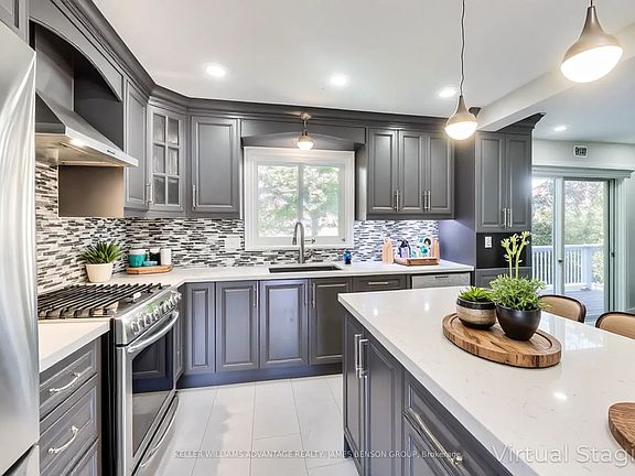 Experience incredible value in Pickering's sought-after West Shore, quietly nestled on a peaceful court. This four-bedroom, four-bath residence welcomes you with a sun-filled family room featuring a cozy fireplace and elegant skylights, creating an inviting space to relax or entertain. The heart of this home is the open-concept kitchen with pristine stone countertops, a functional breakfast island, and a convenient butler's pantry--perfect for preparing family meals or hosting guests. The large pie-shaped lot offers an expansive backyard deck, seamlessly accessible from the kitchen for easy outdoor grilling or al fresco dining. The retreat-style primary suite boasts dual closets and a spa-inspired ensuite bath with double sinks and a spacious shower, providing a true oasis to start and end each day. Additional bedrooms and bathrooms offer abundant space and privacy for everyone. With walkable access to the tranquil Petticoat Creek Conservation Area, the shores of Lake Ontario, and Frenchman's Bay West Park, this property blends the warmth of home with the beauty of nature just steps away. Every detail, from quiet court location to generous living spaces and thoughtfully placed skylights, enhances your everyday comfort and enjoyment. Discover a wonderful place to call home--offering space, scenery, and unbeatable convenience in one of Pickerings most desirable communities.
