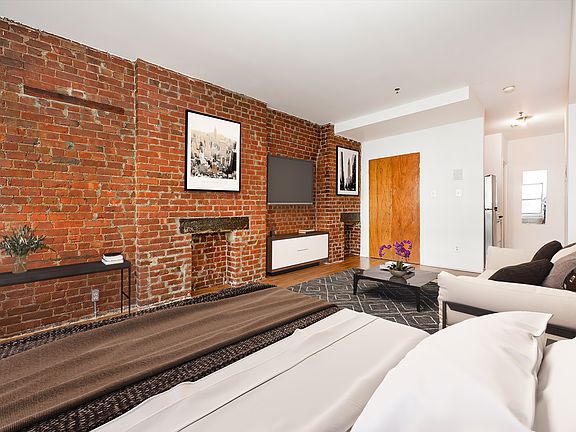 Exposed brickGreat natural lightRecessed and overhead lightingHardwood floorsSpacious layoutCounter-top spaceWood kitchen cabinets