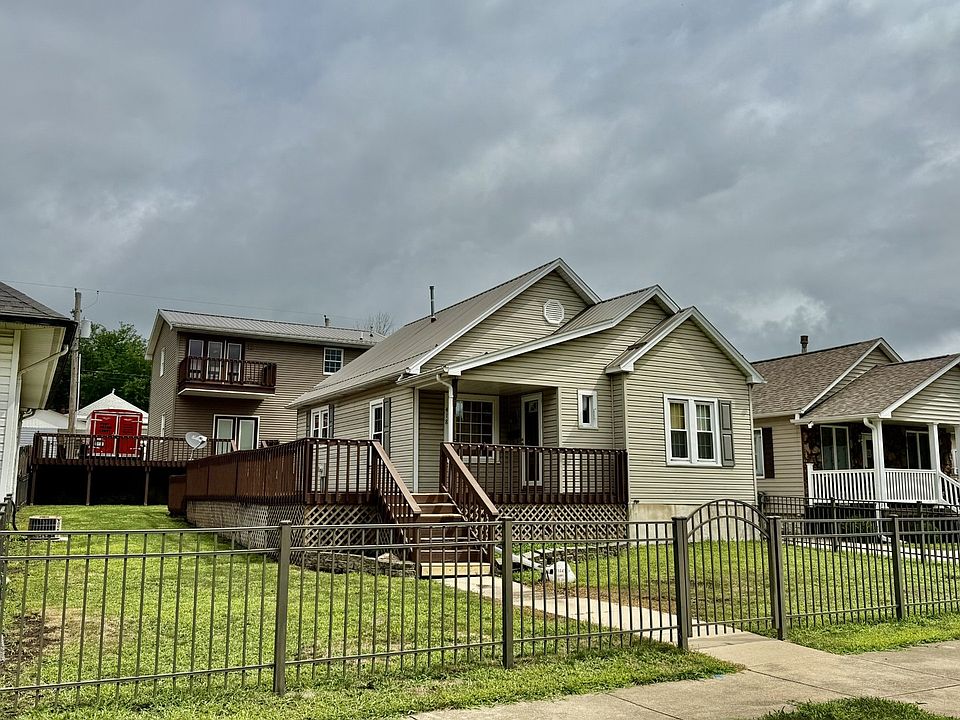 This move-in ready 2 bedroom home is full of charm and features hardwood flooring, an eat-in kitchen, main-level laundry, and a spacious newly remodeled bathroom. The full basement is partially finished, and outside you'll find a large wrap-around deck, fenced yard, and an oval above-ground pool with its own deck-perfect for entertaining. A standout feature is the 36x26 outbuilding. The heated lower level includes overhead doors and a half bath, ideal for a workshop or hobby space. Upstairs offers hardwood flooring, a full bath, and electric in place for a future kitchen-making it perfect for a guest suite, man cave, or entertaining area. Both the home and outbuilding have durable metal roofs. So much to offer in a well-cared-for package!