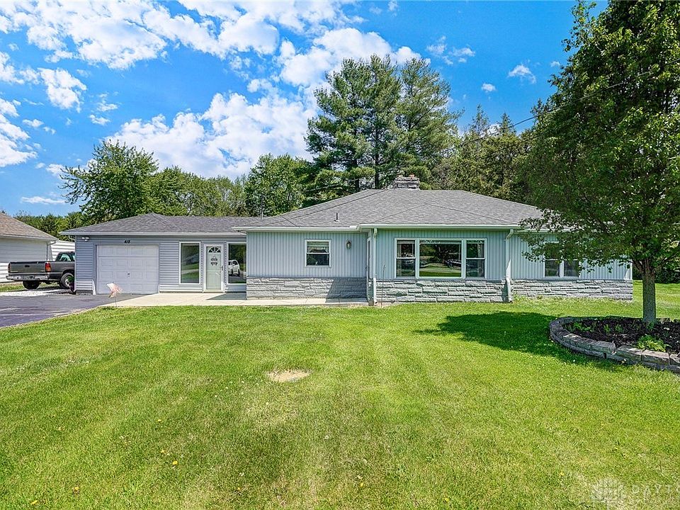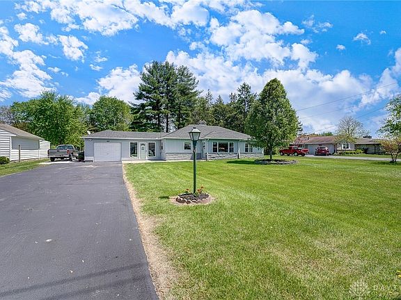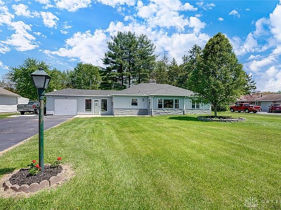 Well maintained 3 bedroom ranch with a 1 car attached garage AND a 30x40 pole barn for all of your toys and hobbies. This home has had a total beautification with all new flooring, freshly painted, new light fixtures, new stove and much more. New roof 2018, new furnace 2016, central air 2021, water heater 2013, replacement windows, plumbing rerouted through attic, a water filter and a water softener. Covered patio for outside enjoyment. Square Footage is approximately 1628 per seller as the breezeway was enclosed for a large family room. Convenient location off Rt 70, Rt 72 and Rt 68. Perfect commute to Beavercreek or Columbus.