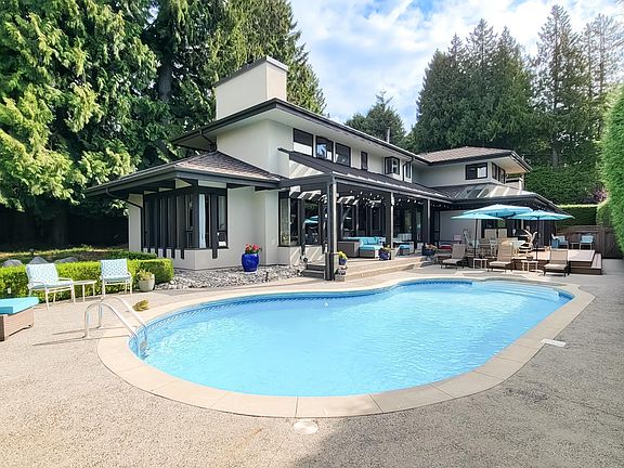 Tucked naturally into its setting, this West Coast Modern post-and-beam home has been carefully maintained. Clean lines, exposed beams, and large areas of glass connect the interior with the outdoors. The 5-bedroom, 4.5-bath layout is practical and flexible, with space for family, guests, and private use. A two-car garage and motor court provide easy parking, and the fully developed lower level with separate access offers added privacy and versatility. Set on a large lot, the backyard functions as a private retreat with a solar-heated pool, landscaping, and patio space for daily living and easy entertaining. Homes of this architectural calibre are rarely available and must be seen to be appreciated. Open house Saturday, Nov 29th, 1–3 PM.