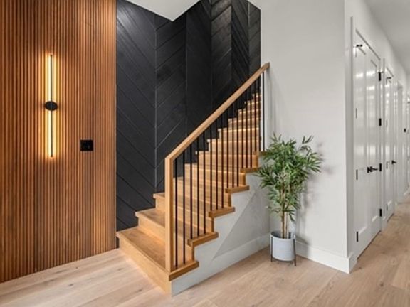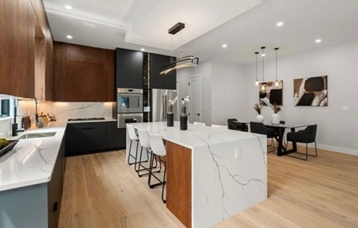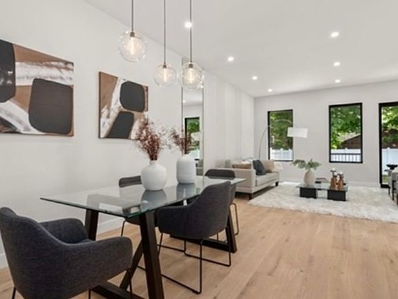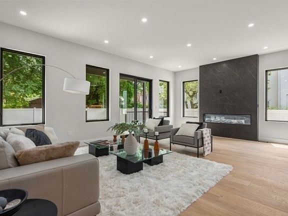Welcome to a new construction townhome in Newton. Upon entering a splendid hall, you'll find a built-in coat closet and a designer powder room. The open-concept 1st floor offers many stunning features, including modern cabinets and Thermador appliances. The living room showcases a linear fireplace and a natural wood slat wall. The 2nd level offers 3 bedrooms, including a primary suite with a walk-in closet and a spa-like ensuite bathroom with heated floors and its own heating and A/C zone. An additional full bathroom and a laundry area complete this level. The 3rd floor provides bonus space with large windows and skylights. The lower level has a private bedroom with a full bathroom, perfect for your guests or an office. Enjoy the outdoors with a patio, deck, and a balcony. This home features outdoor cameras with mobile app connectivity, 5 A/C and heating zones, an efficient irrigation system, and is prewired for an EV charger. Conveniently located