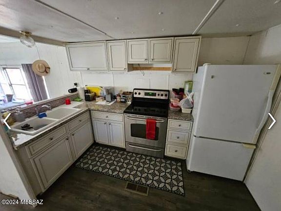 Own this Unique MH on .83 acre in Catalina, Arizona! ~Great to use for a contractors' yard to store heavy equipment, or even use this large yard for kids/pets/hobbies, etc. Home has been remodeled with Granite counters, upgraded cabinetry & flooring, newer A/C, ''PEX'' water lines, minor electrical t/o, & thorough landscaping! Be safe and secure here with your collectables, *Note* Fenced yard with a 16' X 20' raised barn/workshop, & extra storage unit for your things. Relax and Enjoy Catalina living w/ gorgeous mountain views, easy access to hiking/biking trails. WA/DR/RF/MO stays. Newer A/C. 50Amp outlet for RV hookup 100A/240V + Septic!Great opportunity to fix-up. Property sold ''As-Is''. Make Offer Today!
