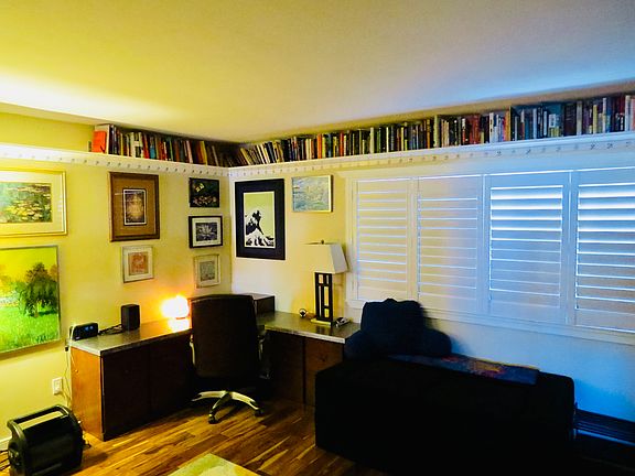 Ample books within spaceInterior decorated with artworkKing-size bedAc in unitOnsite washer and dryerFully equipped kitchen