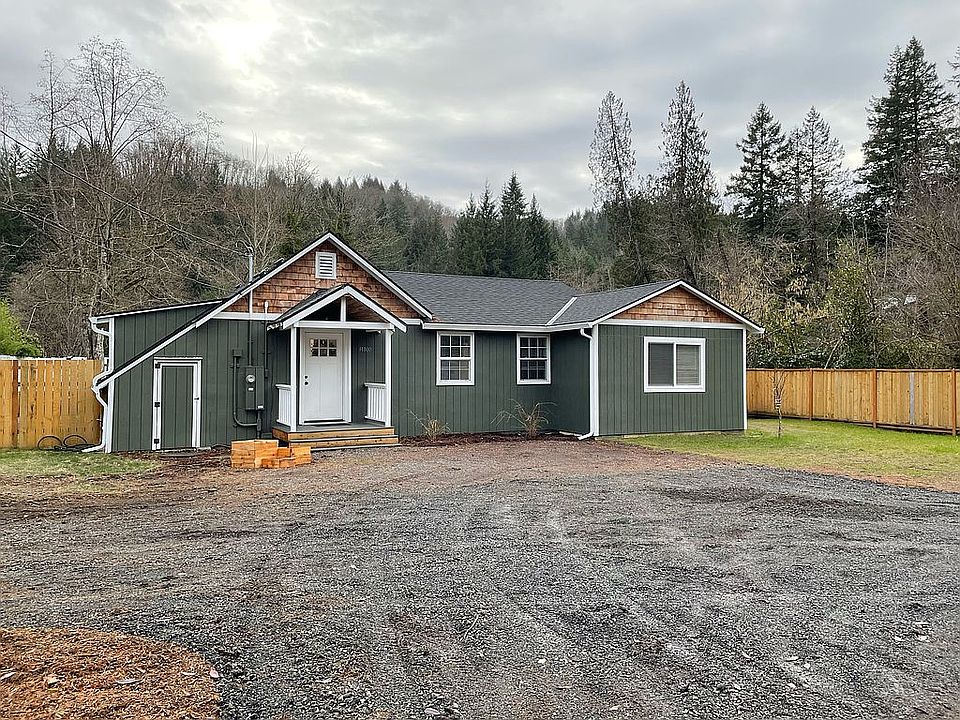 Recently renovated home with new roof. Private backyard backs to cedar creek with property extending to the other side. No need for flood insurance. The house has many charming features such as built in entertainment center above pellet stove and large windows for natural light. Backyard has a covered porch area, shed, chicken coop, large garden, and 4 different types of fruit trees.