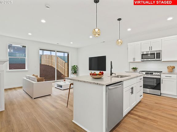 This traditionally styled home features an open great room floor plan, perfect for everyday living and entertaining.Step into a welcoming space with continuous laminate flooring flowing from the entry through the kitchen and dining areas. The heart of the home is a well-appointed kitchen, complete with a gas range, stainless steel appliances, and a sleek quartz island—ideal for cooking, dining, and gatherings.Enjoy seamless indoor-outdoor living with a covered concrete patio and a fully fenced private backyard, located just off the kitchen.Upstairs, the vaulted primary suite offers a peaceful escape with sweeping territorial views from both the bedroom and private upper deck. The upper level includes three spacious bedrooms and a flex space—perfect for a home office, playroom, or media room.Located in the scenic and growing community of Hoodview Heights in Sandy, Oregon, these homes are perfect for anyone seeking comfort with style. PM.Photos shown are for example purposes only and may include upgraded features.Please see your host at 18865 Crooked River Street when you visit the open houses on Saturdays and Sundays 1 to 4.