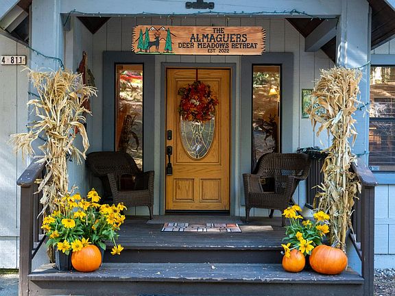 WHY YOU'LL LOVE IT: Tucked just below the road in a peaceful hollow surrounded by tall pines, this warm and spacious mountain retreat offers the perfect balance of privacy, comfort, and gathering spaces. Featuring 4 bedrooms and 3 baths, 4th bedroom is a large bunk/game suite with a wet bar, closet and central heat (buyer to verify usage) this home was designed for connection. Truly a "gathering" cabin.A formal dining room welcomes family feasts and holiday celebrations, while the charming eat-in kitchen brings back memories of cozy meals and morning coffee by the window. Plantation shutters frame forest views throughout, and the open great room with wood ceilings and a stone fireplace invites everyone to relax after a day on the trails.The front porch, dressed for Fall with pumpkins and daisies, sets a storybook tone, while the back deck overlooks forest views and the community trail below ideal for morning walks or stargazing nights.The gently sloped, private driveway places the home just beneath the street, providing a sense of retreat, safety, and privacy that families and pet owners adore.Currently a popular vacation rental, this cabin is turn-key and ready for your next chapter whether as a cherished family getaway, income-producing retreat, or full-time mountain home.