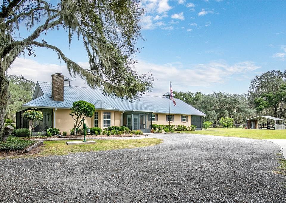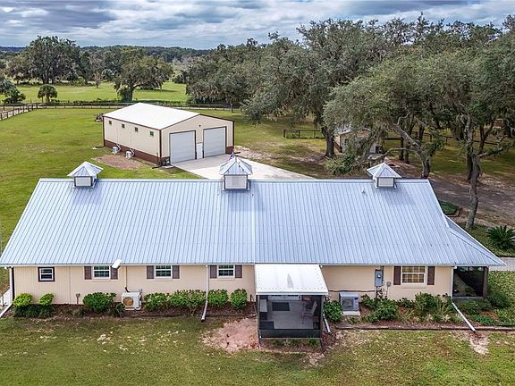 Private 10-Acres of rolling acreage with Barn, RV Pad & Endless Potential. Once in a while you find that tranquil property that is so inviting that it must be seen in person to appreciate the possibilities it offers. Set on 10 pristine acres of towering oaks and manicured pastures, this one-of-a-kind property offers unmatched privacy, serenity, and opportunity. The main home currently features just under 1,000 sq. ft. of finished living space, with an additional 1,000 sq. ft. already integrated and easily converted—bringing the home’s potential to approximately 2,000 sq. ft. with minimal effort. Designed for comfort and efficiency, the home includes a commercial-grade AC system, heavy insulation, and four screened lanais—each offering a unique and tranquil view of the property’s natural beauty. Outdoors, you’ll find fruit trees, a full hookup RV pad, and a spacious storage garage. The impressive 36x48x14 barn is fully insulated, air-conditioned, and built for versatility, featuring heavy-duty concrete for a lift, 110 amp service, and dual high-lift garage doors—perfect for a workshop, car enthusiast, or agricultural use. With multiple fenced pastures, this property is ideal for horses, cattle, or any livestock of your choice. This is more than a property—it’s a lifestyle. Rarely does an estate offer such peace, privacy, and potential all in one place. Don’t miss your chance to own this truly unique piece of paradise!