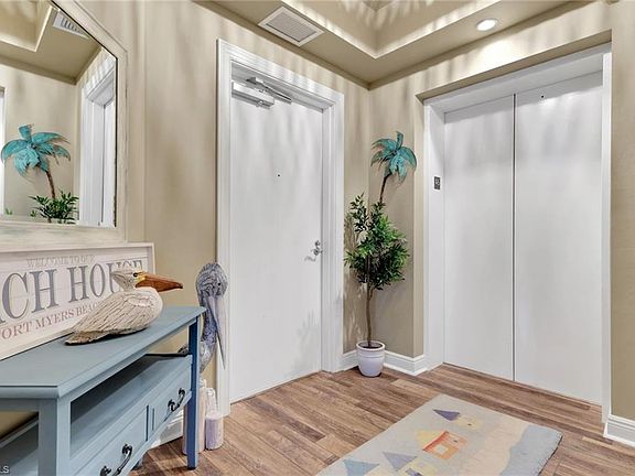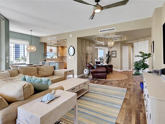 Discover the pinnacle of coastal living in Waterside, a prestigious gated community at the southern tip of Estero Island. This exceptional 3-bedroom, 2-bathroom condo offers the perfect blend of luxury, comfort, and unmatched scenery—with sweeping views of both the Gulf of Mexico and the serene Bay. Step into your semi-private elevator and ascend to a residence designed to impress. Inside, high-end upgrades abound—from the spacious, chef-inspired kitchen to the expansive open floor plan that effortlessly blends functionality with elegance. Sunlight pours through large windows, illuminating every corner and framing the stunning natural beauty just outside. Enjoy peace of mind with impact-resistant windows and electric hurricane shutters on the balcony—your safety and comfort are paramount. The expansive balcony is your front-row seat to breathtaking sunsets over the Gulf—an ideal setting to unwind with a drink or entertain guests in style. Whether you're hosting family and friends or enjoying quiet evenings at home, this condo offers the perfect balance of vibrant island life and tranquil retreat. Plus, with shopping, dining, and nightlife just minutes away, you're never far from everything you need. Don’t miss your chance to own a piece of paradise—experience the elegance, serenity, and lifestyle that only Waterside can offer. Schedule your private tour today!