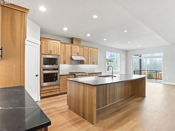 If you're in search of spacious living, the Brightwood M plan is the perfect choice! This home features five bedrooms, including a fantastic primary suite that boasts double sinks, a soaking tub, a full-tile shower, and a massive walk-in closet. The vaulted great room effortlessly connects to the dining and kitchen areas, all enhanced by durable laminate flooring. The gourmet kitchen is a chef’s delight with its stainless steel appliances—gas range, built-in electric oven, built-in microwave, dishwasher, and under-cabinet hood-vent—paired with quartz countertops, a corner pantry, and a central island. Adding to the home's appeal is the well-appointed laundry room designed for convenience and ease. Outdoors, enjoy a generous 27’ x 11’4” covered back patio/deck, ideal for relaxation and entertaining. HOODVIEW HEIGHTS HOMES ARE OPEN SATURDAYS AND SUNDAYS 1 TO 4. COME SEE THESE EXCEPTIONAL HOMES BEING BUILT NOW!