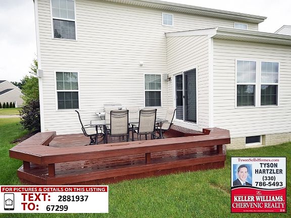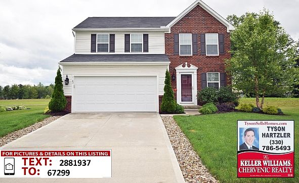 Built in 2010, this colonial in the Sterling Green neighborhood of Brimfield has a welcoming foyer which leads to an open concept floor plan with a great room, eat in kitchen, and morning room. A full basement offers endless possibilities for additional living space and storage. The upstairs features a master suite with walk-in closet and bath. Second floor laundry eliminates the need to climb stairs with heavy baskets. This home is move in ready! This property features a great space for all of your outdoor activities. It showcases an established lawn with beautiful landscaping and deck with bench seating. This home is located close to the exciting new downtown Kent development while providing for the quietness of suburban living. Easy access to I-76 makes getting to Akron, Cleveland, or Youngstown a breeze! Don't wait 'til this beautiful home is sold! Call today to schedule your showing!