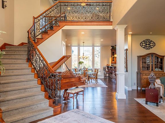 Custom cabinetryWalk in closetSweeping staircaseBuilt in bbqHardwood floorsFire pitWall-to-wall windows