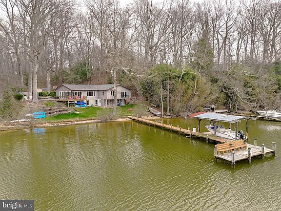 Waterfront on Battle Creek with sandy beach, pier, lift and COVERED BOAT SLIP!!! . Four Bedrooms/ Three full baths. One acre of privacy. Amazing views up, down and across the Creek, with views out to the Patuxent River. Perfect gentle slope to the water. IF you enjoy boating, kayaking, paddle boards, crabbing and fishing off of your own pier... toes in the sand, Do NOT hesitate!! Need to get away from the hustle and bustle of life... this is the perfect quiet, peaceful private location. Open floor plan with walls of glass to capture the views. Living area is just the right size for friends and family. Open kitchen with granite countertops, stainless appliances, wine refrigerator. Primary bedroom with gorgeous views from your pillow! Walk in shower, whirlpool tub. Two additional bedrooms with hall bath. Lower level features Rec Room area, 4th bedroom -- All with water views, full bath, storage and walk out to the water. Decking and stone patio area offer lots of space for relaxing, outdoor dining and gorgeous sunsets. Play ground equipment for children conveys. Fire pit with lots of firewood ready and waiting for you. Paved driveway. MLW per Navionics is 3-4 ft New roof in 2018. French drain installed in past few years by Bennett Waterproofing. Shared well with adjoining property, recorded agreement in documents, Well sits on this property. Recorded driveway easement and maintenance agreement in documents. Being sold AS IS. Furniture, kayaks, SUPs, paddle boat are negotiable if Purchaser is interested, all also as is. Ideal for full time living or weekend escape. Everything is in place and ready for a new owner to move in and enjoy, just as boating season begins!! Priced to sell!!!