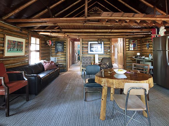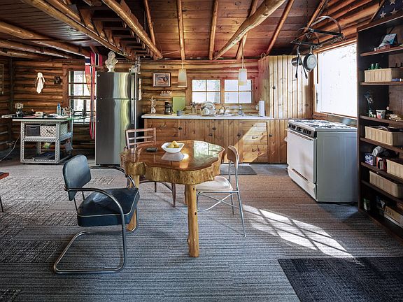 The cozy log cabin, originally built in 1947 with a 1997 addition, has been lovingly updated with a brand-new front door, new refrigerator, and fresh living room carpet—all while maintaining its original rustic character. Inside you'll find 1 bedroom, 1 full bath, a spacious family room with lake views, a wood stove, and a laundry area making it ideal for both seasonal retreats and year-round living. A 26x42 heated pole barn with dual overhead doors, electric, and a poured concrete floor provides secure storage for boats, ATVs, snowmobiles, and more.