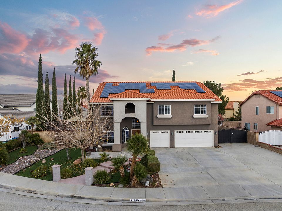 There is no home in the Quartz Hill/Palmdale area like this 5 bedroom, 4 bathroom, 4,088 sqft POOL+ SPA HOME. Nestled on almost a 12,000 sqft lot, this one-of-a-kind cul de sac home has one of the largest primary suites + bonus/game rooms around. The upstairs Jack-&-Jill bathroom that connects two of the huge bedrooms is a rare treat. Not only is there a 3-car garage, walk-in laundry room, Solar power, and a walk-in closet, but it's also located away from any busy streets and traffic noise. Welcome home to this rare find in the hills of Quartz Hill.