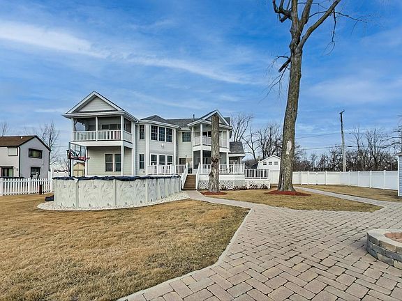 Everything you are looking for!!! Sunset Views! Great location on Lake Marie on the Chain O'Lakes - located in a no-wake bay so swimming, paddle boarding, kayaking, fishing can all be done safely right off your dock. This three bedroom/two bathroom house is situated on the lot to have spectacular views all around. This is the ultimate entertaining house with a spacious deck, a large paver patio with a firepit, a small dockside "party' house with electric, a brand new above ground pool with heater and a hot tub and new Atlas Pier with bench and ladder. Guests won't want to leave! First floor has new LPV flooring and an open kitchen with breakfast bar and table space. The cozy family room has a stunning corner stone fireplace. There is a first floor bedroom and updated full bathroom. The upstairs has a very large primary suite with a screened deck off of it, room for an office area, huge closet and updated primary bath. The second upstairs bedroom is used as a bunk room and also has a private deck space. Laundry is located on the upstairs level. Your lot across the street features a two story garage with workshop and tons of second floor storage, open space that backs to a stand-alone pond and two storage sheds. Enjoy all the Chain has to offer right outside your door - boating, swimming, restaurants and more! The town of Antioch offers so much - shops, restaurants, a live performing theatre and a movie theatre. Parades, Concerts at the Band Shell, Taste of Antioch, Wine Walks... there is something for everyone. Wilmot Mountain is a 15 minute ride and offers snow skiing and tubing and there are many parks and forest preserves to explore. This home comes fully furnished so there is nothing to do but move in and start enjoying lake living! *** Requesting all offers best and final by Monday, February 17th at 6p.m.***