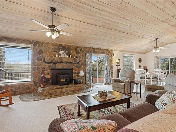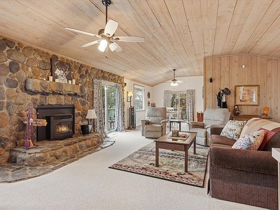 Beautifully maintained and full of charm, this three-bedroom, two-bath country home sits on a one-acre, woodsy lot with natural rock outcroppings. This inviting home features a circular driveway and a beautifully remodeled kitchen with stainless steel appliances and stone countertops. Both bathrooms have been nicely updated. At the heart of the living area is a stunning stone hearth and mantle with the convenience of a pellet stovean ideal spot to warm up on winter evenings and perfect for hanging Christmas stockings.The home showcases gorgeous wood features throughout, including wood-clad walls, ceilings, and charming built-in cabinetry that add warmth and character. One of the guest bedrooms opens onto a large deck overlooking the natural landscape, while the expansive composite deck off the back of the home offers low-maintenance outdoor living and plenty of space for entertaining & watching the deer saunter by.Located on a very quiet cul-de-sac, this property offers exceptional peaceful country living. Call today to schedule your tour.