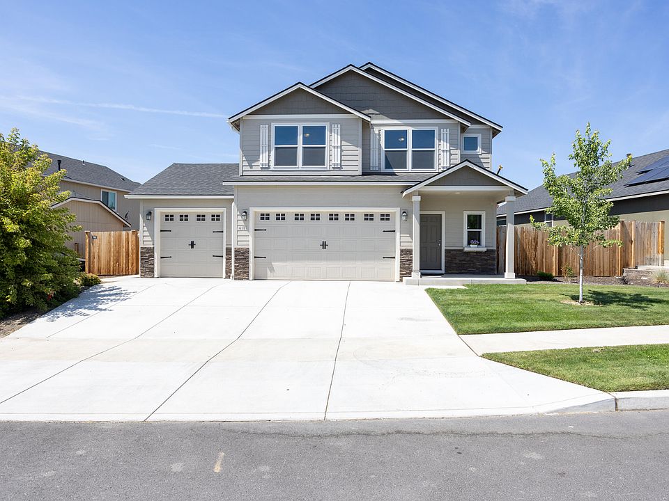 $19,000 PRICE IMPROVEMENT! Meticulous, move in ready, lives large. Generous rooms & high ceilings. Rare 4 bedroom floor plan. Open concept, bright main floor is perfect for entertaining. The great room is open to a dining area, kitchen & covered back patio. Kitchen has a breakfast bar, beautiful white cabinets, quartz counters, an under counter sink, SS appliances w/a gas cooktop & pantry. Great room has large windows, high architectural windows & cozy gas fireplace. Primary suite is spacious w/large walk in closet. Primary bath w/double vanity, soaking tub & full size shower. Laundry room w/washer/dryer combo incl. Patio w/gas stub for BBQ. Whole house blinds. Level yard is fenced w/big lawn, timed irrigation & lots of privacy. A 4ft extension to a 3 car garage provides plenty of space for toys, plus a level driveway. Gutters on S side of garage. Peaceful community w/walking trails, park, close to schools & conveniences. 10 min to Redmond airport, easy access to 97, 15 min to Bend.