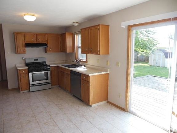 Fresh, clean carpets and neutral colors. Large bedrooms. Bathroom that has access from the master bedroom. Eat-in kitchen with tile floors and nice appliances that stay. Half bath on the main floor and 1st floor laundry. Lower level family room with wood laminate flooring. Fenced yard with deck, paver patio and garden shed. Roof 2018. Water heater 2011.