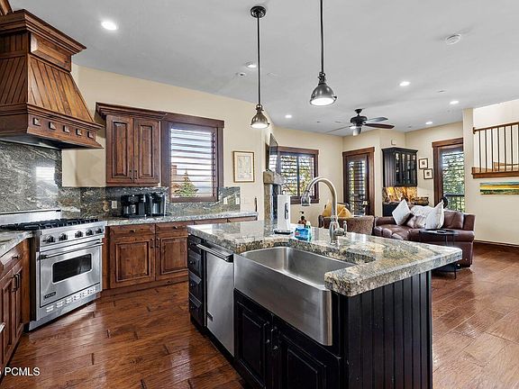 This exceptional townhome-style condo offers the ultimate blend of luxury, convenience, and year-round recreation. Located in the heart of Canyons Village, it provides unrivaled ski access, with a short stroll to the private Frostwood Gondola. Beyond skiing, this location is a haven for outdoor enthusiasts. Spend your summers hiking and biking on nearby trails or enjoy a round of golf at Canyons Village. For a relaxing evening, take a stroll next door to the Waldorf's Restaurant for dinner. The townhome itself is a sanctuary of comfort and style. It features timeless finishes, high ceilings, and beautiful wood flooring. You'll find three natural stone gas fireplaces, providing warmth and ambiance, along with en-suite bathrooms for every bedroom. The kitchen is equipped with high-end appliances, and the home boasts a spacious walk-in laundry room and plantation shutters throughout. Massive windows with motorized shades fill the space with natural light. Owners have invested in significant upgrades, including a spacious ski prep room with heated floors and ample storage, an enlarged deck, and a private hot tub area complete with a TV. This thoughtful design ensures you can easily unwind and melt the day's activities away. In addition to your private hot tub, you'll have access to Juniper Landing's fantastic amenities, including a heated outdoor saltwater pool, a hot tub, a fire pit, and a fitness center. The property is sold furnished, making it a seamless transition into your new home. This is the perfect ski and summer property you've been searching for.