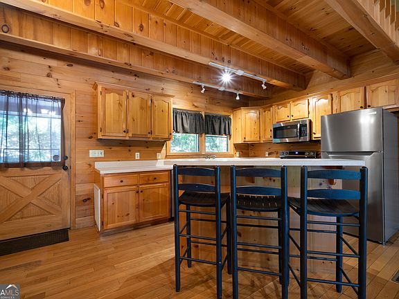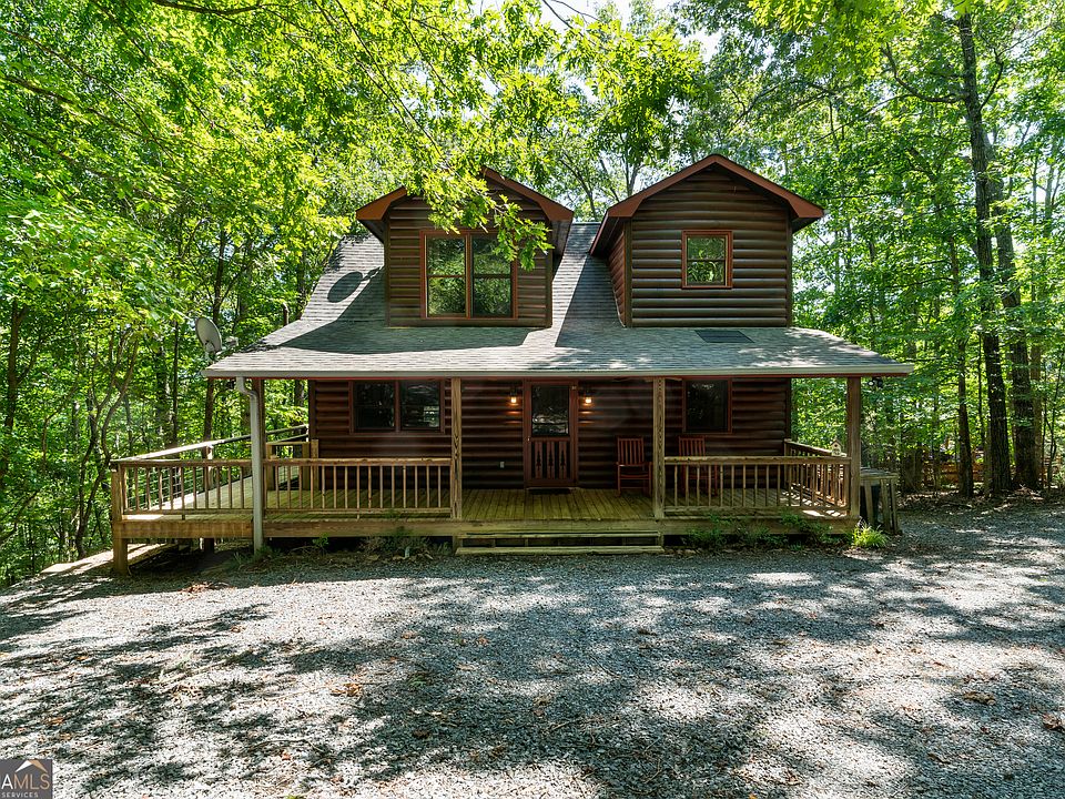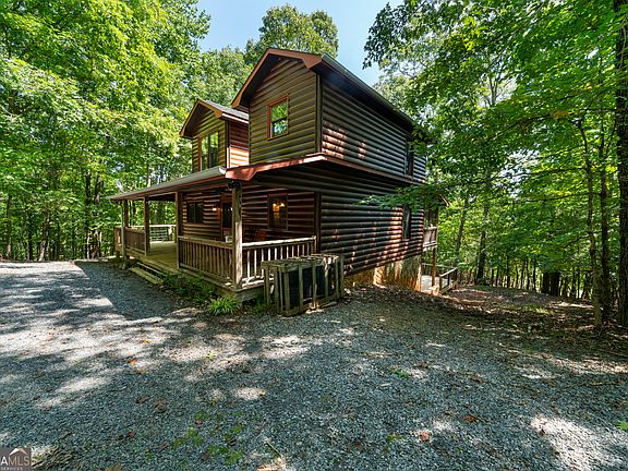 Escape to your private mountain sanctuary in the coveted My Mountain community! With the convenience of all-paved roads, you're just a scenic 10-minute drive from the vibrant shops and dining of downtown Blue Ridge. This immaculate, move-in ready log cabin is a rare find, perfect as a peaceful retirement haven, a multi-generational family retreat, or a high-demand short-term rental investment. Step inside and be greeted by the warmth of a spacious great room, where a crackling wood-burning fireplace invites you to unwind. The open-concept layout flows seamlessly into a modern kitchen, fully updated with brand-new stainless steel appliances. The main level also features a convenient primary bedroom with a full ensuite bathroom, complete with dual 'his & her' sinks. Ascend to the upper level to discover a second private bedroom suite, also boasting a full ensuite bath and double vanities, offering a perfect retreat for family or guests. The fully-finished terrace level is a game-changer, featuring a complete in-law suite ideal for extended stays or as a separate rental unit. This versatile space includes a cozy living area with a gas log fireplace, a brand-new kitchenette, a sleeping area, and a full bath. Your outdoor oasis awaits! Entertain and relax on the brand-new, two-story deck, perfect for grilling while overlooking your private, wooded lot. Spend your evenings sharing stories around the newly built stone fire pit or soaking in the hot tub on the peaceful, screened-in porch-a true year-round luxury. With recent major upgrades, an ideal location, and a floor plan built for comfort and income, this is the Blue Ridge opportunity you've been waiting for. Don't let this dream slip away. Schedule your private showing today and start living the mountain life!