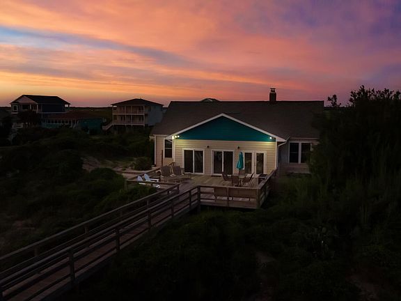 This OCEANFRONT home on CASWELL BEACH, Oak Island is a rarity. A unique blend of modern amenities and upgrades with plenty of original character making this property a nostalgic treat to the soul. Sprawling across the oceanfront on a 74' wide lot and nestled amongst a mountain of deep dune protection customary with Caswell Beach. Enter the main level to a massive open floor plan and soothing views. You are greeted by an aesthetic of original natural wood finishes with brick accents giving nod to a different era and taking you back to a simpler time. You can feel the history of decades of memories and decades gone by. The galley kitchen features granite countertops and glimpses of the Intracoastal waterway boats gliding by. The fully open dinning room hosts a large gathering table to host large groups while breaking bread. The spacious living room seamlessly integrates a place to kick your feet up dressed with a brick hearth fireplace and wood mantle. The oceanside family room provides more space to entertain and unwind while enjoying surrounding views. The main level also features 4 bedrooms each with its own attached full bath. The lower level of the home hosts two additional sleeping rooms, a billiard room with furnished pool table and air hockey. The downstairs living room provides a separate hangout and makes it the ideal retreat for guests or the younger crowd. Outside offers an expansive deck off the house with a hot tub patio creating the ideal outdoor space for outdoor enjoyment. Your private boardwalk leads you to the beach and a secondary deck offering panoramic views of the Atlantic Ocean and Bald Head Island. HVAC & Roof have all been replaced in recent past leaving you nothing to do but enjoy this slice of paradise on the highly sought after and rarely available Caswell Beach, know for it's peaceful & quiet atmosphere, oversized lots and captivating views! Sold fully furnished with a six figure annual rental history even with plenty of owners blocks.