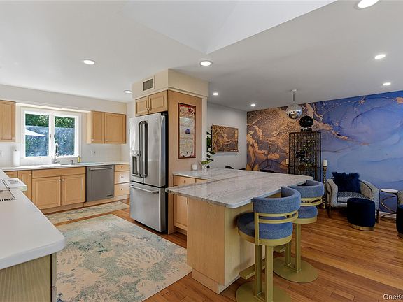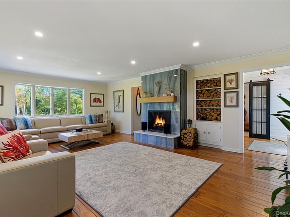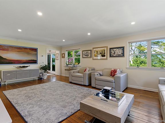 Welcome to Split Rock Cottage, this fully furnished, renovated designer, Centre Island Cape may be the treasure you seek. In an exclusive community with beach and mooring rights, private police, it shares this island with grand estates and high profile individuals. Up the road, Seawanhaka Corinthian Yacht Club provides frequent sailing regattas – fun to watch. A six-minute scenic drive away, Oyster Bay Village offers charming restaurants, shops, waterfront center, and train station. About thirty-five-miles from Manhattan, you can escape the city and be home to your picture-perfect, blue and white cape in about 1.5 hours. This picture-perfect, 3-bedroom, 2-bath, 8-room home will welcome you with a seaside atmosphere, sophisticated appointments, and a beautiful setting for grand, year-round entertaining. Just a short drive from the Locust Valley and Manhasset areas, offers you easy access to premier shopping, dining, theatre, universities, estate museums, and sports venues including golf, boating, equestrian facilities, horse trails, and nature walks. Whether you are searching to upgrade your lifestyle or want a weekend getaway from the city for yourself, or to reward an outstanding employee, or a perk for your favorite customer, this stunning party house is the answer to your dreams. As you turn into your courtyard, you feel right at home. Past lush plantings, charming front door, and front patio with umbrella, table, and chairs, a stone walkway leads between the house and storage shed to an outdoor kitchen and delightful Tiki bar that seats six, with wet bar, television, and water views. Steps descend to a large stone patio, winding lawn, many potted plants, water fountain, luxury seating, hot tub, shady umbrellas, and ample space to accommodate a crowd. Enjoy the firepit with friends or wash off sand and salt in the nearby privacy-fenced shower. A lovely side garden leads up to a deck with dining platform, second gas grill, and another comfortable conversation area. No matter the occasion, whether entertaining a few friends, holding a shindig, taking a hot soak, sunbathing, or enjoying a sunny breakfast, you will love your new home. The home’s interior boasts a charming foyer with shiplap walls, privacy-glass entry door, closet, and staircase with black iron-and-wire balustrade. Farm-style French doors open to a large study with adjoining bedroom and lovely full bath. Possible first-floor primary suite. The spacious, sunny living room offers water views, a wood-burning fireplace encased in Azui Macaubas polished porcelain and white leathered marble, a huge, framed-picture television, and reclining leather chairs and sofa. The adjoining great room features a vaulted ceiling and a stunning lapis-lazuli accent wall and skylights in the “bubble lounge” area. An L-shaped marble breakfast bar, with seating for seven, flows into the kitchen offering ample white oak cabinetry, stainless steel appliances, sliders to the dining deck, and a door into the one-car garage with lift, now used as a deluxe gym with door to deck. The second floor features a lavish Azui Macaubas polished porcelain and white leathered marble primary bath, an immense four-season, walk-in closet with water views, and a luscious primary bedroom- authentic alligator bed. The lower level provides room for fun with billiard table, coffee bar/beverage station-mini refrigerator, Sorrento game table (poker, roulette, chess, checkers, backgammon), and a striking designer bath. Additional features include two-zone climate control for central air and electric forced air; portable backup generator (propane or diesel); access panel in study; new roof in 2024; gutter guards; and cesspool serviced 2024. Just 800-avenue-feet is the local private beach where you can swim, paddleboard, kayak, and moor your boat. Come, sail across the harbor to Coopers Bluff or enjoy the famous lobster salad at The Clam Bar at Bridge Marina. Turn-key, Low Taxes! View 3D tour & floor plan.