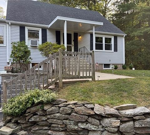 Welcome to this charming Cape Cod-style home, privately set back from the road on just over an acre of land. Enjoy the peace and privacy of your surroundings while remaining conveniently close to highways and shopping. This home features newer windows and a roof, with an open-concept living room and kitchen that flow seamlessly together. Step out onto the spacious deck just off the kitchen-perfect for summer barbecues and entertaining. There's plenty of room for gardening or creating your own outdoor oasis. The flexible layout includes a potential in-law setup with an ensuite bedroom on the first floor, as well as a generous primary suite upstairs. Both bathrooms have been beautifully remodeled with impeccable finishes. Hardwood floors run throughout most of the home, complemented by durable LVP flooring in the living room and kitchen. On the main level, you'll also find a large great room with endless possibilities-it just needs your finishing touch. Don't miss your chance to make this beautiful home your own. Schedule a showing today!