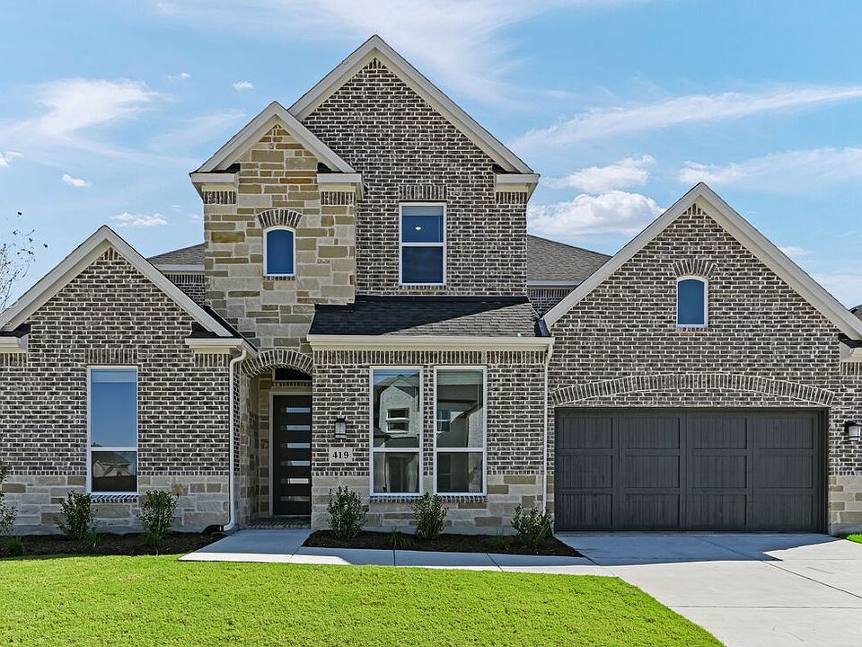 Welcome to the Topaz at 419 Chatham in South Oak 60s! Enjoy lakeside living in a beautiful, amenity-rich community featuring walking trails, a resort-style pool, fitness center, clubhouse, and a fishing pond. A new elementary school opens nearby in fall 2025. The Topaz offers a flexible layout with a private study, media room, and a secondary bedroom off the foyer. The gourmet kitchen opens to the gathering room, casual dining area, and extended covered outdoor living space. The main-floor primary suite features a spacious bath and walk-in closet. Upstairs includes two more bedrooms and a game room. Stylish, spacious, and made for modern living-welcome home. Additional Highlights Include: Study in place of flex, extended primary suite, drop-in tub at primary bath, covered patio, pop-up ceilings at game room, and secondary bathroom upstairs.
