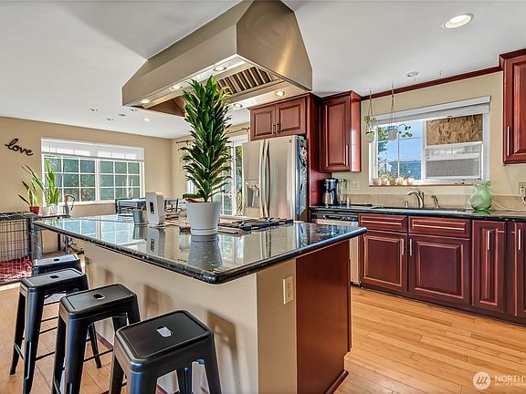 Large backyardBamboo flooringSpacious bedroomsCherry cabinetsGranite counter-topsProjector screen