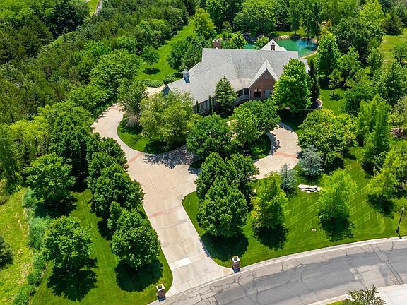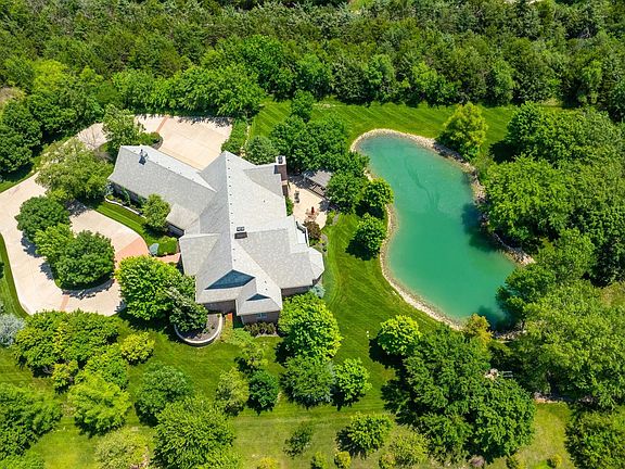 Located on a very private 1.6 acre beautifully landscaped home site with its own private pond and water feature, this spacious VanBuskirk built home features a great open floor plan and fantastic attention to detail. The quality and character is visible in the massive wood beams, wide crown moldings, beautiful wood flooring, great cabinetry, 4 fireplaces and so much more. The large gourmet kitchen includes Thermador double ovens, 6 burner gas cooktop, warming drawer, two dishwashers (one in pantry), trash compactor, microwave and refrigerator. The walkthrough pantry is accessible from both the kitchen and mud room. The master suite is the perfect retreat with a sitting area, large dressing area and huge master closet with lots of built-ins. The office has french doors and an abundance of built-ins. A split stairway leads to the walk-out basement that offers a large rec room with fireplace, a game room, a wet bar an exercise room, another powder bath, large bedrooms with walk-in closets and plenty of storage. Above the garage is a bonus room which makes a great hobby room/craft room. Many extra features such as heated steps leading to the front porch to minimize snow removal, great exterior lighting, a switch inside to turn on water feature in pond and a Davinci roof. The spectacular landscaping, incredible trees and stocked fishing pond create a resort-like atmosphere and you’re just a short walk from the nationally recognized Flint Hills National Golf Club!