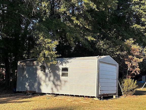 Brick home with open concept family area with eat in kitchen that includes range with hood, Bosch dishwasher and Island counter with barstools. Also, in the kitchen is a built in small pantry and large cabinet to store small appliances. Bedrooms are separated with master with full bath tub/shower, walk in closet as well as a standard closet, right off the family/kitchen area, and additional two bedrooms located at the other end of house with a full bathroom with large step in shower with a linen closet between them. The hallway has a storage closet too. Large dining area or could be used as additional family gathering area has a beautiful bay window and front door that exits on a front porch. The laundry room offers lots of storage. Large attic as well for additional storage. Carpet in the bedrooms, tile in the bathrooms and LVP flooring in other areas. Natural Gas package with Hot water heater and a small wall heater located in the kitchen. Also, there is a HVAC unit. Beautiful landscaped yard, paved driveway with a large storage building in the backyard for all your outdoor items or hobbies. Nice location that is convenient to grocery store, shopping and restaurants but still in an area that is quiet and relaxing. This house is a must see!