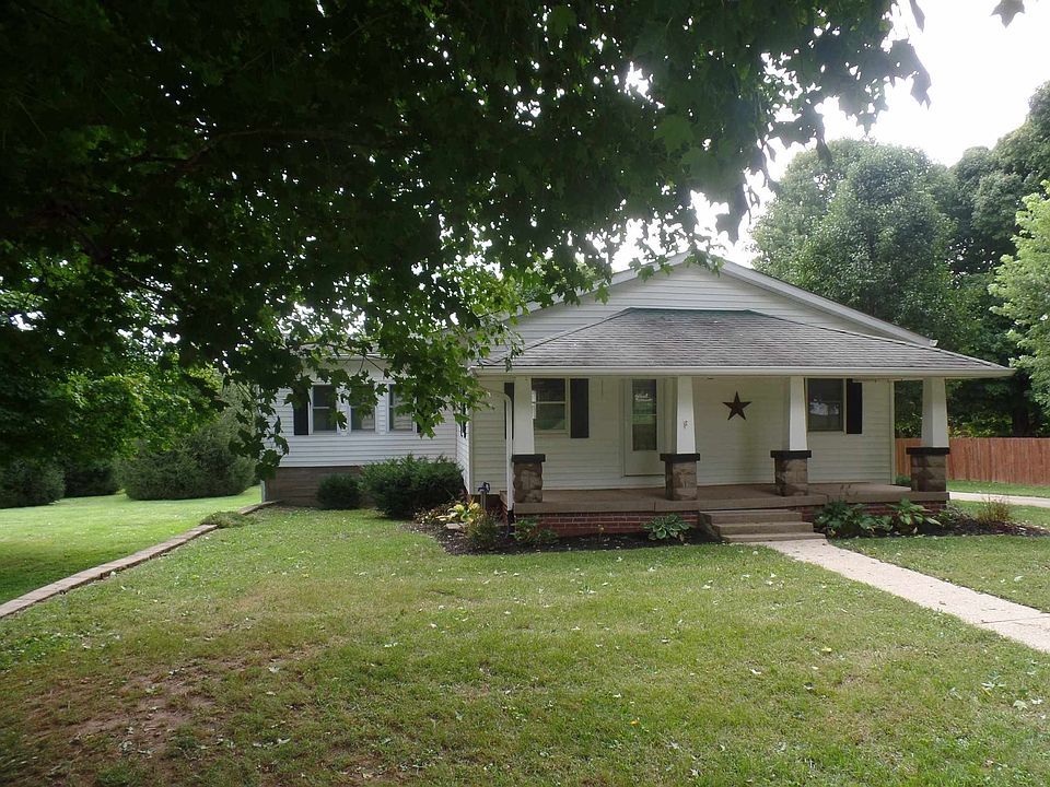 Charming home on the outskirts of Bloomfield. This home features an open concept living room/dining room/kitchen. Kitchen has a large pantry. Dining room has pine walls for a rustic look. 2-bedrooms and 1 full bath would make this a perfect starter home. Walk-out basement also has the W/D hook-ups. Concrete driveway leads to a 2-car detached garage on approximately 1 acre. Enjoy your evenings on a front covered concrete porch. 1-car detached garage in the back has plenty of additional storage. It also contains a separate area that can be used as a studio apartment . This space contains all utilities, full bath and W/D hook-ups.