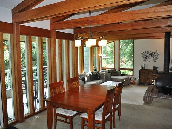 This architecturally custom designed home is stunning & sits on 90 ft of creekfront. For those who long for something totally unique, this is it. Spectacular wood work w/ open beams, natural light streaming through the windows with southern exposure. Main level w/master, tons of storage, including unfinished space for hobby room. Walking distance from town, yet you enjoy total privacy in your Garden of Eden w/nature at your doorstep. Truly a harmonious blend of home, setting & location.