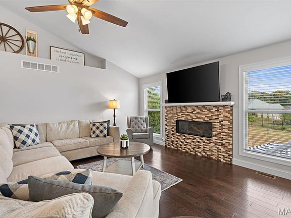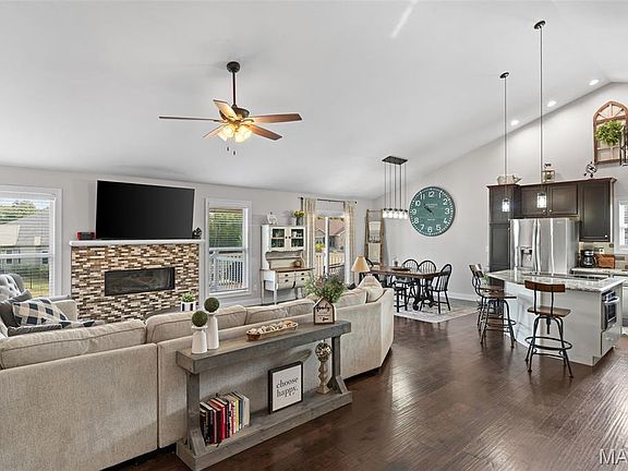 Must see! This gorgeous ranch style home has so much to offer. From the front yard featuring landscaping, irrigation system, and covered front porch; to the 3 car garage, 5 bedrooms, plus a bonus office room, 3 full bathrooms, and main floor laundry room. You enter the home through the front entry foyer into a spacious open floor plan with beautiful wood flooring. The living room features vaulted ceilings with a custom fireplace, flowing into the dining/ kitchen combo area where the kitchen offers maple cabinets, stainless appliances, double oven, center island with cooktop, granite countertops, and walk in pantry. The primary bedroom features a walk-in closet, walk-in shower, jacuzzi tub, and double vanity. The finished lower level includes a family room, a dry bar, two bedrooms, plus a bonus room/ office, and plenty of storage space. Do you love to entertain? This home also has a maintenance-free covered deck for grilling, or just relaxing. Take the stairs down to the lower patio where there is a fire pit and a large fenced in yard. Front yard features landscaping, irrigation system, and covered front porch. Come check out this amazing home!