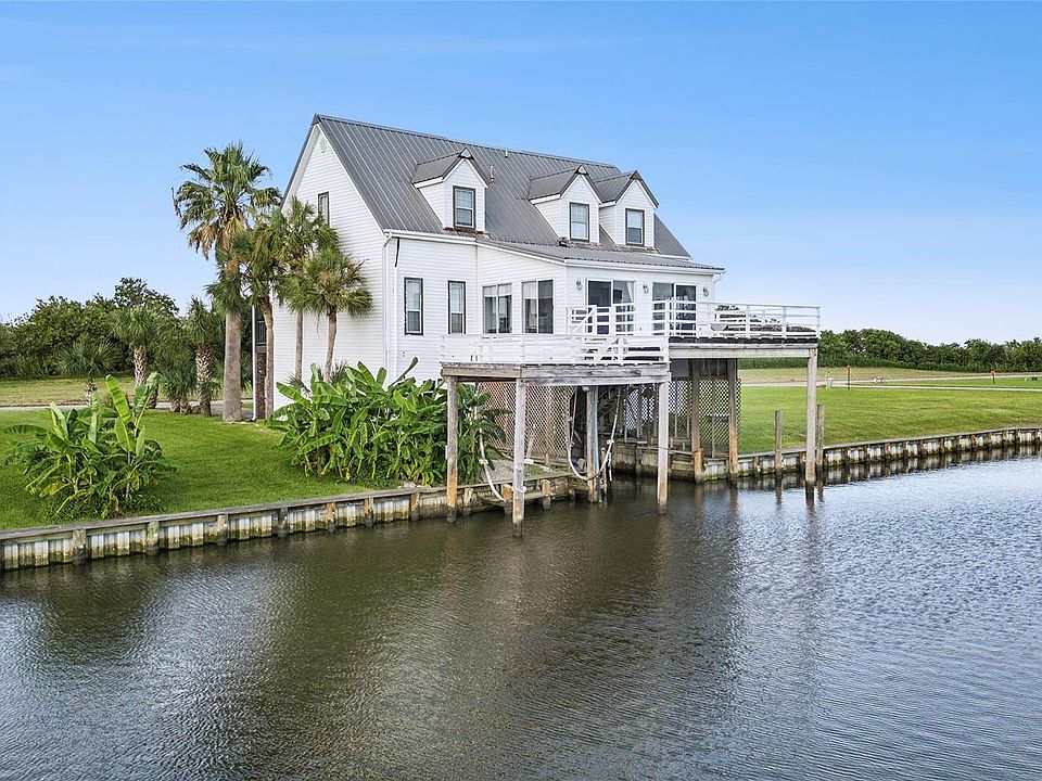 Beautiful Waterfront Home in On Pleasure Island - Discover coastal living at its finest in this 3-bedroom, 4-bathroom waterfront home located in the highly desirable Mariner’s Cove community. With direct inlet access to Sabine Lake, plus a nearby boat ramp and fishing pier. Interior Features: Open-concept layout with dining area and sunroom, Cozy gas-burning fireplace in the main living area, Downstairs bathroom finished with cedar and reclaimed wood; Two one-car garages with extra storage (one with a new garage door) Primary suite with walk-in closet and additional storage space. Reclaimed brick accent walls at garage level Exterior Features: Expansive two-level wooden deck overlooking the water. Perfect spaces for entertaining, relaxing, or simply enjoying the view. Ideal setting for fishing, kayaking, or appreciating the natural surroundings. Situated in a private, gated community Enjoy year-round waterfront living or make it your perfect weekend retreat.