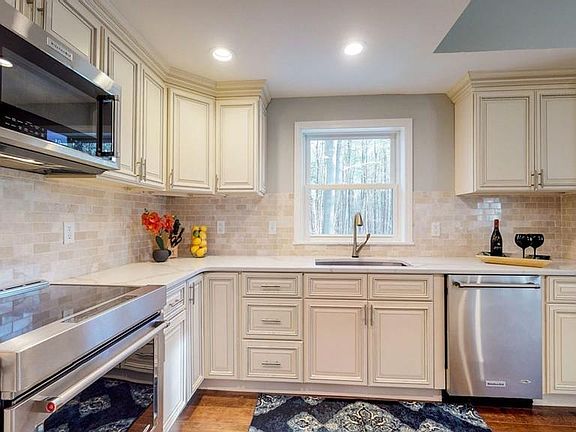 Aggressive Price Drop!! Sellers are already in their new home! Bigger Than it looks! Set back on a 1 acre lot you will find this recently remodeled ranch house. Everything has been done in the last 2 years. Open concept. Main level has front to back living room/ dining room with vaulted, beamed ceilings, gorgeous natural light and a slider to the deck/ backyard. Stunning wide plank engineered, hardwood floors- hand distressed. Kitchen boasts upgraded cabinetry with soft close doors and drawers. Trendy quartz countertops. Kitchen Aid "Chefs Edition" Appliances complete with induction cooktop, custom extra large stainless undermount sink. Large Master with bathroom en suite and 2 closets. A second sunny bedroom and full bathroom complete this level. The basement was completely finished last year. Many options here. More bedrooms? an office? game room? Huge family room and Storage space. New Roof, New Heat System, Central Air, All Windows replaced with energy saving, Harvey Window