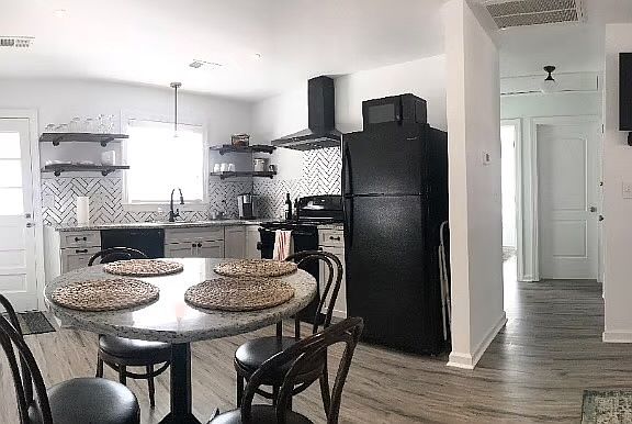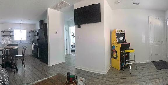 This upgraded duplex apartment offers neat minimalist comforts on a quiet street between Downtown, John's Island, and Folly Beach.