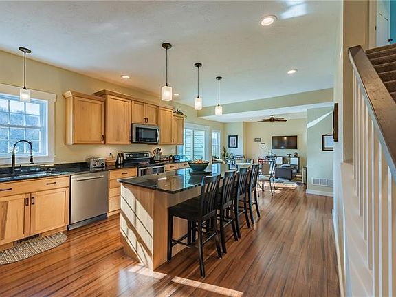Almost new at 3 years old, fully equipped kitchen including granite countertops, stainless appliances, hardwood floors, open floor plan, 1st floor master bedroom suite and laundry room, large composite deck overlooks the private back yard, upstairs has 2 bedrooms full bathroom and open area, finished basement has a family room den/4th bedroom and full bathroom with walkout to patio, 2 car attached garage has full storage underneath with access from back yard, 9 ft ceilings throughout, 3 zone hvac and much more!!