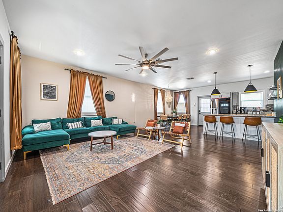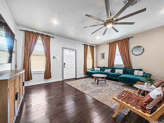 Just a stone's throw from downtown San Antonio, nestled in the Historic Dignowity Hill-San Antonio's first exclusive residential suburb boasting rich legacy-lies this stunning 3-bedroom, 2-bath gem. This home features spacious rooms with a fresh modern design and zero carpet for easy maintenance. The open floor plan, adorned with plenty of windows, effortlessly connects the living spaces and allows for an abundance of natural light. The lovely kitchen boasts gorgeous countertops, stylish pendant lighting, a beautiful backsplash, and stainless steel appliances. You'll appreciate the beautiful fixtures, modern 5-paneled doors, and a tiled decorative nook wall that enhance the home's overall aesthetic. Additionally, the washer and dryer, along with a state-of-the-art security system that you can control remotely, are included!! The owner's ensuite and the second bath both feature luxurious tiled walk-in showers, adding to the extensive list of modern features. Step outside to the beautiful backyard, featuring a spacious deck, a grand pergola with a hammock for ultimate relaxation, and a privacy fence with low-maintenance zero-scaping. Amazing skyline views await you as you get the vibrant city life without the constant hustle and bustle right outside your door. Think quick trips to trendy restaurants, local art shows, farmer's market, historic district tours, leisurely strolls in the park, and a calendar packed with community events. With easy access to HWY 281, as well as within 3-5 minutes of the trendy Pearl District, King Williams Historic District, and the artsy & eclectic Southtown, this amazing home is truly a must-see, blending historic charm with contemporary living!
