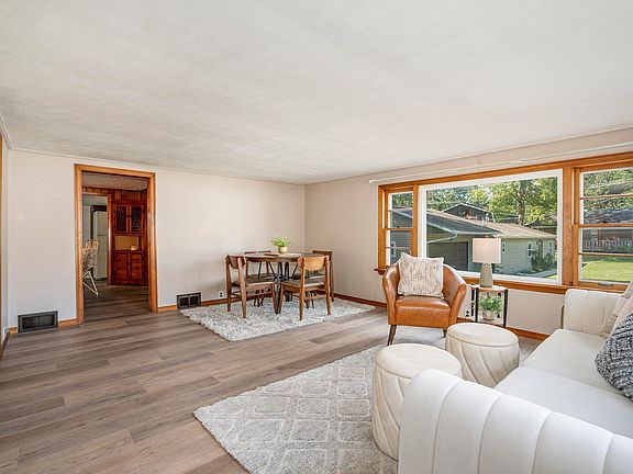 Charming place to make your home sweet home on a DOUBLE LOT! This one is cozy and sweet with a cute enclosed front porch at entry. Living is large enough to have a dining area and the big picture windows allow for abundant light. 2 comfortable bedrooms and a small hall that is a great multi use space. Pretty in pink in the bathroom - just love this mid century color scheme. Kitchen isn’t huge but designed well for easy use-ability and there is another small area for eating. Attached garage AND basement. Don’t miss out on Grandma’s She Shed that was enjoyed by several grandkids when visiting! Quiet in town Warsaw location on dead end street. Walk to grocery, coffee and park.